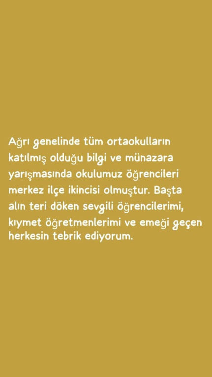 Okulumuz il geneli yapılan okullar arası münazara yarışmasında İl 2.si olmuştur . Emeği geçen tüm öğretmenlerimizi ve öğrencilerimizi tebrik ediyoruz.